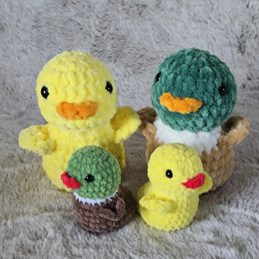 W zestawie znajduje się mama, tata oraz dwoje kaczych maluchów: syn i córka. Każda maskotka została wykonana ręcznie na szydełku.