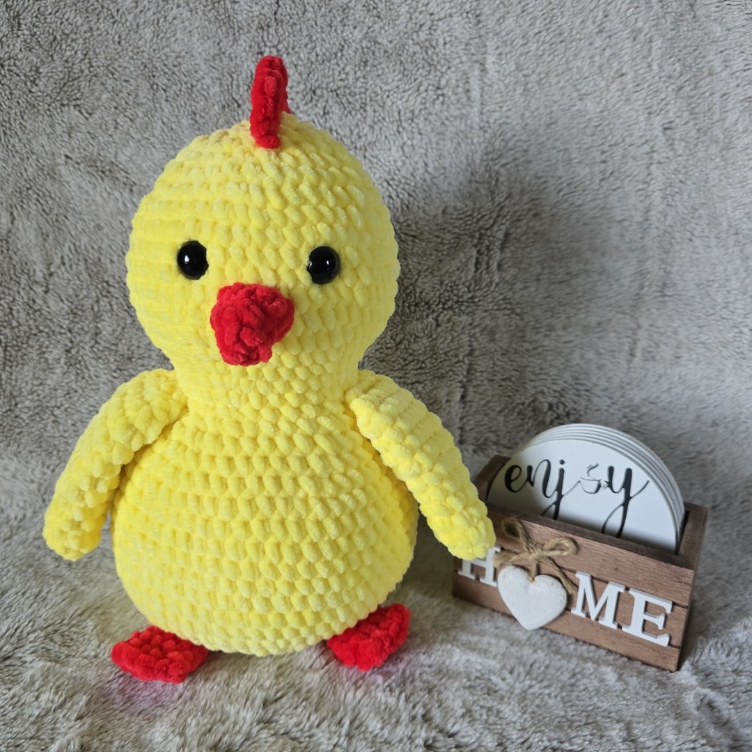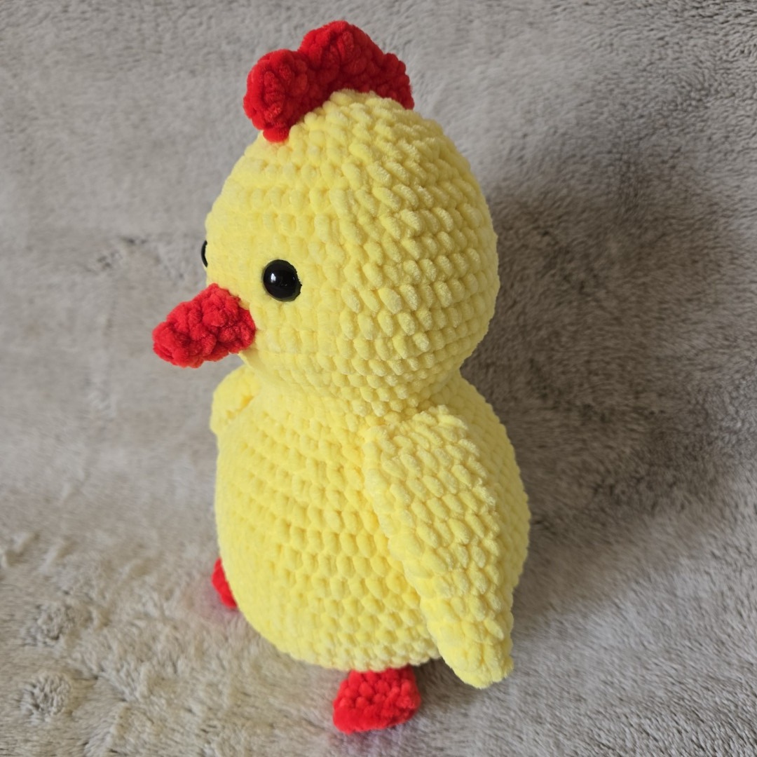 Poznaj Bułę – ręcznie szydełkowanego kurczaka w imponującym rozmiarze, który nie zna pojęcia „za dużo przytulania”! Wykonany z niezwykle puszystej włóczki, jest tak przyjemny w dotyku, że trudno się od niego odkleić☁️