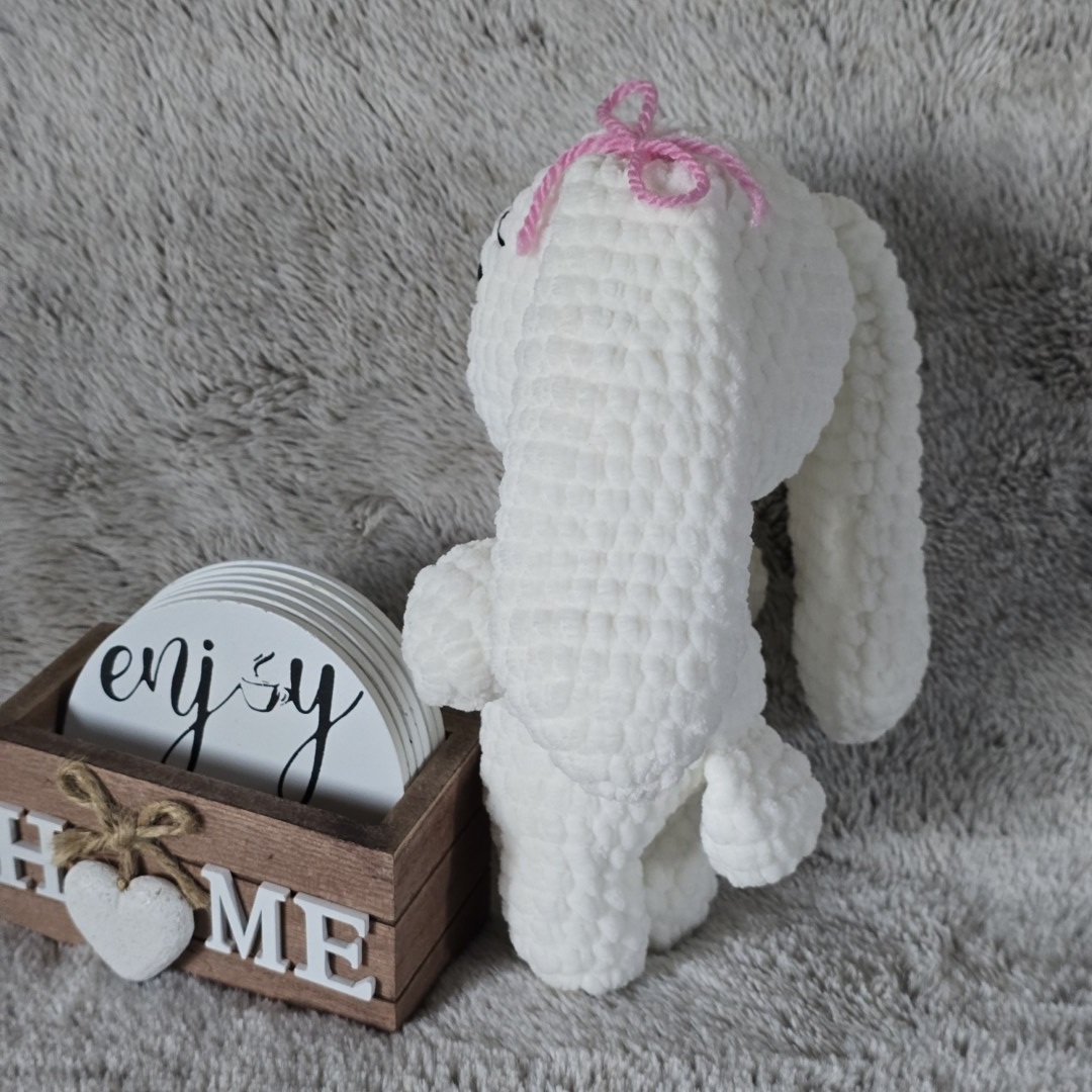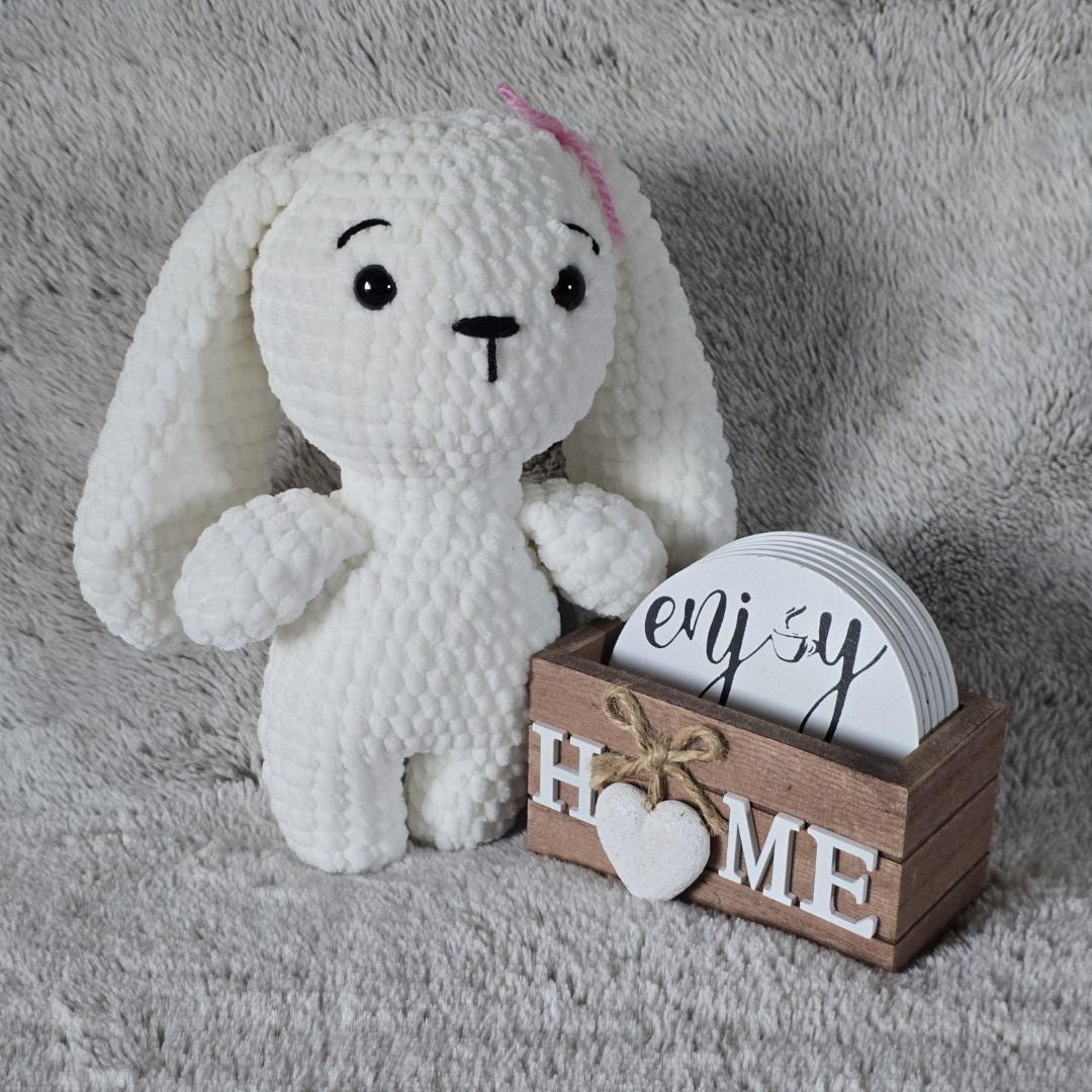 Jego długie uszka, delikatna forma i ciepły charakter sprawiają, że idealnie nadaje się do przytulania, zabawy i spokojnych chwil przed snem. Dzieci pokochają go za bajkowy wygląd, a dorośli docenią estetykę i autentyczność wykonania handmade.