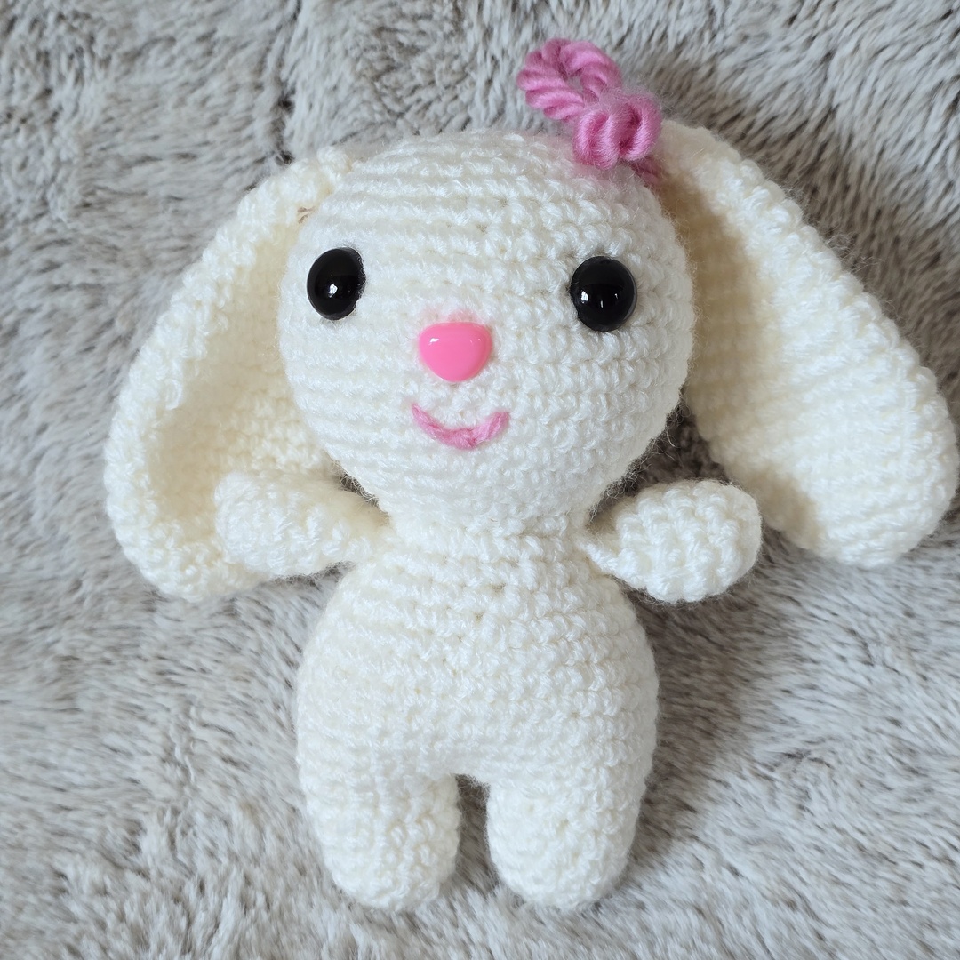 Poznaj Zuzię – ręcznie szydełkowaną maskotkę z długimi, opadającymi uszami, które szeleszczą historiami z dawnych czasów. Wyszydełkowana z tradycyjnej włóczki o subtelnym, vintage charakterze 🧶 zachwyca klasycznym urokiem i ponadczasową prostotą.